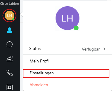 In Cisco Jabber können Sie die Einstellungen auf zwei Arten öffnen: