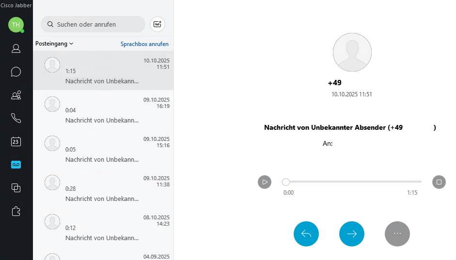 Der Voicemail-Bereich im Cisco Jabber Client ermöglicht es, Sprachnachrichten direkt innerhalb der Anwendung abzurufen, anzuhören und zu verwalten.