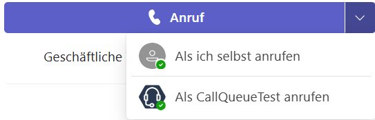 Die Auswahl „Als CallQueueTest anrufen“ ist eine optionale Funktion, die nur erscheint, wenn Sie Mitglied einer Anrufgruppe (Anrufverteilgruppe) sind und Ihr Administrator Ihnen die Berechtigung erteilt hat, mit der Rufnummer dieser Gruppe ausgehende Anrufe zu tätigen.