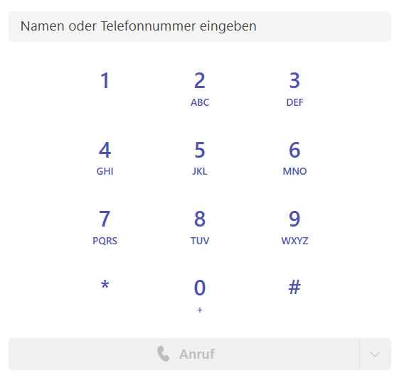 Die Wähltastatur befindet sich im linken Bereich des Anruf-Portals und dient zur Eingabe von Telefonnummern oder Kontaktnamen.