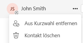Kontakt löschen: Löscht den Kontakt dauerhaft aus Ihrer persönlichen Teams-Kontaktliste.