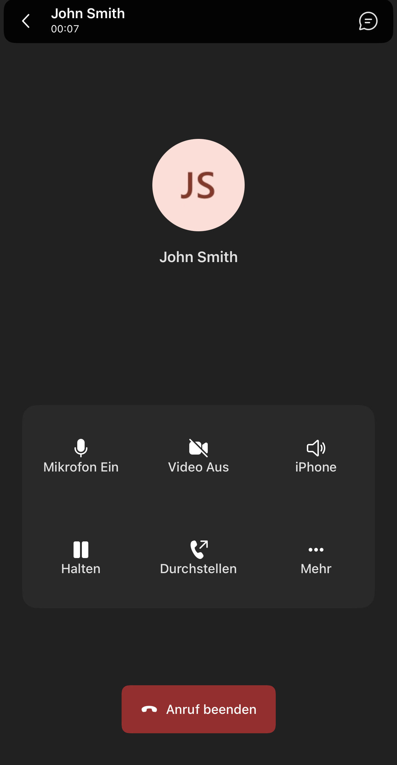 Während eines Gesprächs werden die wichtigsten Steuerungselemente in der Anrufansicht angezeigt: