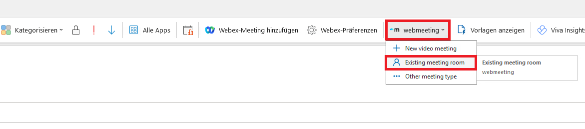 - Anschließend auf "Existing meeting room " in der sich aufklappenden Menüleiste klicken