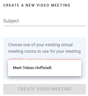 Über den "Meeting room owner"-Buttonin der Menüleiste, können Sie im Anschluss zwischen den erwähnten Meeting-Räumen auswählen.