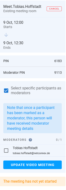 - Berechtigungen vergeben: Hier kann ein Haken bei den Teilnehmern gesetzt werden, die auch als Moderatoren dem Meeting beitreten sollen.